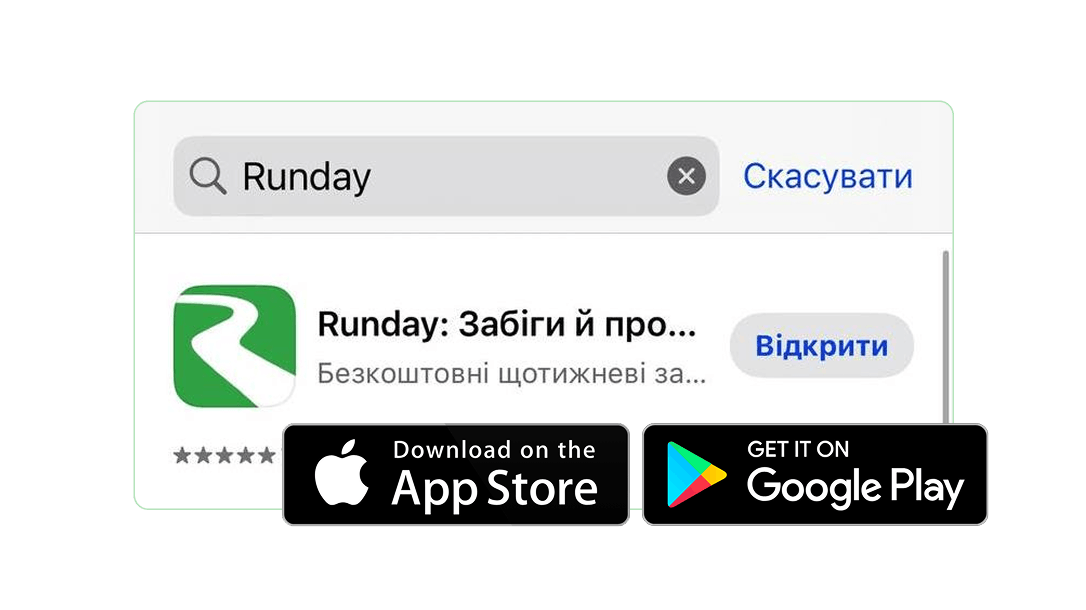 Відкрийте Застосунок: Використовуйте офіційний мобільний застосунок Runday, доступний у Google Play та Apple App Store.